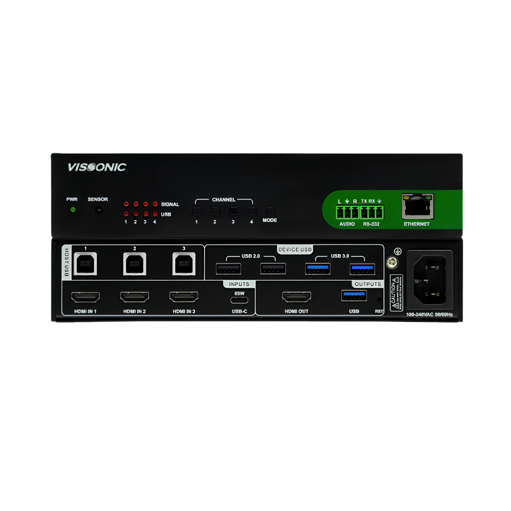 VIS-MV42 là bộ điều khiển hình ảnh, trình chiếu đa năng, phù hợp với phòng họp, hội trường, lớp học và các giải pháp âm thanh hình ảnh (AV), được thiết kế cho các không gian họp tích hợp (unified meeting spaces). Thiết bị trang bị 3 cổng HDMI vào, 1 cổng USB-C đa chức năng (hỗ trợ truyền tải audio/video hai chiều và sạc nhanh 65W), cùng kết nối USB 3.0, cho phép tích hợp camera, micro và các thiết bị ngoại vi để phục vụ họp trực tuyến trên Microsoft Teams® và Zoom™ theo mô hình BYOM (Bring Your Own Meeting – họp bằng laptop cá nhân).